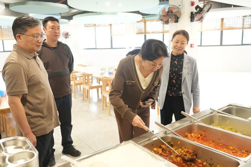 检查组到学校直奔食堂核心区,按 “全链条无死角” 标准督导:仓储间核查食材分区存放与安全存储情况;加工区检查生熟操作分区及规范;食品留样室查看冰箱温度、餐品留样品种与分量,确认均符合管理规定。石静看到学生体验“小小厨师”的生活课程,为班级学生打餐服务,还亲自传授“技巧”。随后,检查组与师生同餐,体验餐食温度、口感与营养搭配。检查后,检查组对学校食堂管理给予指导:学校后厨管理规范,从食材入库到加工,关键环节管控到位,筑牢校园食品安全首道防线。充分考虑低龄学生特点,餐食设计兼具营养性与适口性,体现了用心的服务保障。学校要持续精细管理,守护好学生的健康成长。